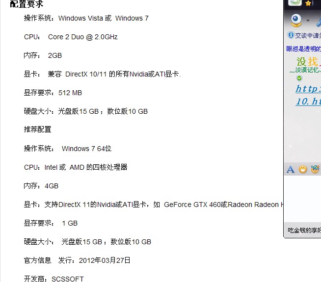 硬盘:WDD5000AAKX/显卡:祺祥GTX460TI/显示器:飞利浦241E /方向盘:罗技G27+BR-Z支架