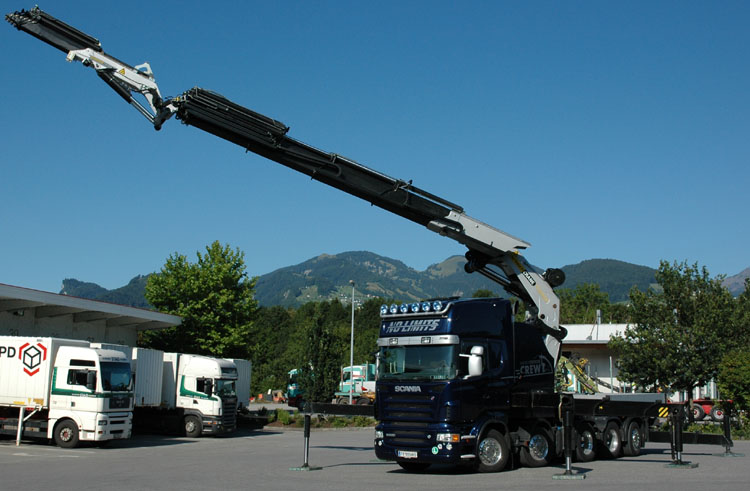 An 10x4 tractor with a Palfinger PK150002 crane