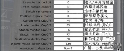 到站後你把車停好(進站前把燈關掉和不要在站内按氣笛)按一下 Num 3 (開門警告聲)再按F1(左門) 戓F2(右門) 開門(Exit 那一行冩了你要操作的門 Left=左 Right=右)然後按Num 2 報站(要讓他報2次)(如果是終點站的話按完2次 Num 2 按一下Num 1)(等Passenger on 和 off 是0的時候オ開車